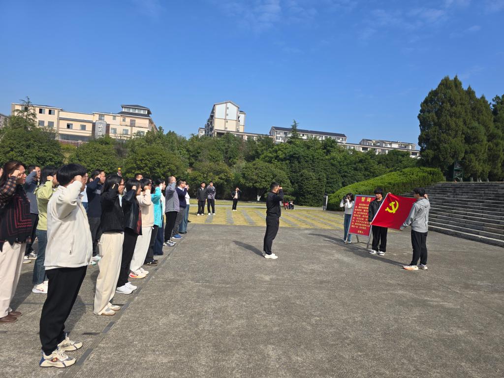 在纪念碑前,全体党员庄严肃立,敬献花篮,向革命先烈三鞠躬。随后,面对鲜红党旗,重温入党誓词,铿锵有力的誓言在纪念碑园内回荡,彰显着党员赓续红色血脉、践行初心使命的坚定决心。