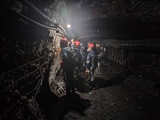 走访期间,考察团分别与河池南丹高峰矿业有限责任公司、广西华锡矿业有限公司铜坑矿业分公司、河池五吉有限责任公司、南宁中冶矿源综合利用有限责任公司、河池南丹南国矿业有限责任公司、广西地质调查院南丹县项目部以及广西二一五地质队有限公司等矿山企业和地质勘查单位围绕区域深部找矿勘查、人工智能找矿预测、人才培养等方面进行了技术交流,并对部分矿体进行了井下实地考察。各方均表示今后将进一步加强矿产勘查技术以及人才培养方面的合作。