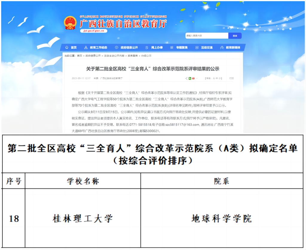 成功入选第二批全区高校“三全育人”综合改革示范院系(A类)